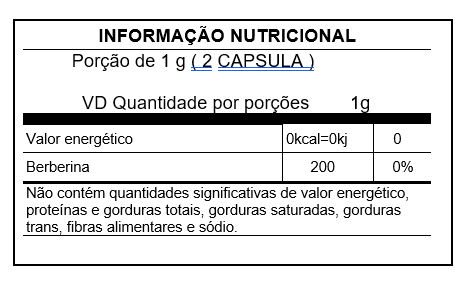 Ingredientes: Berberina e Excipiente Q.S.P.