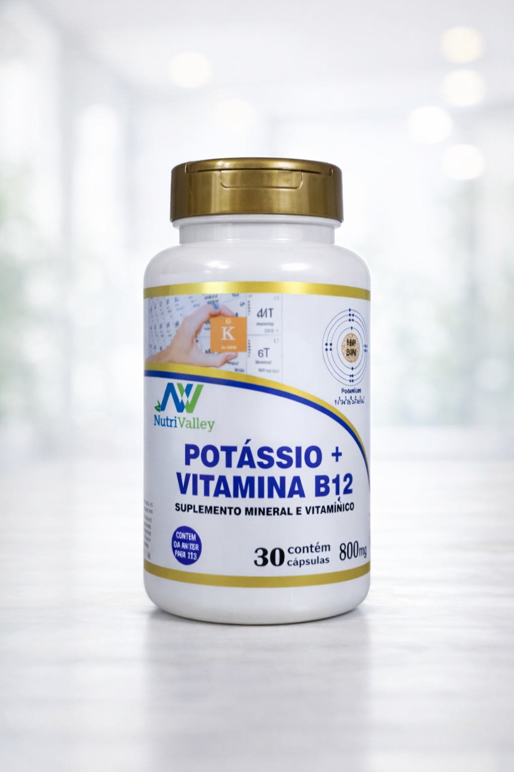 A combinação de potássio e vitamina B12 oferece diversos benefícios para a saúde, atuando em conjunto para a saúde neuromuscular, regulação hídrica e função cardiovascular, além de auxiliar no metabolismo energético e na prevenção de doenças.